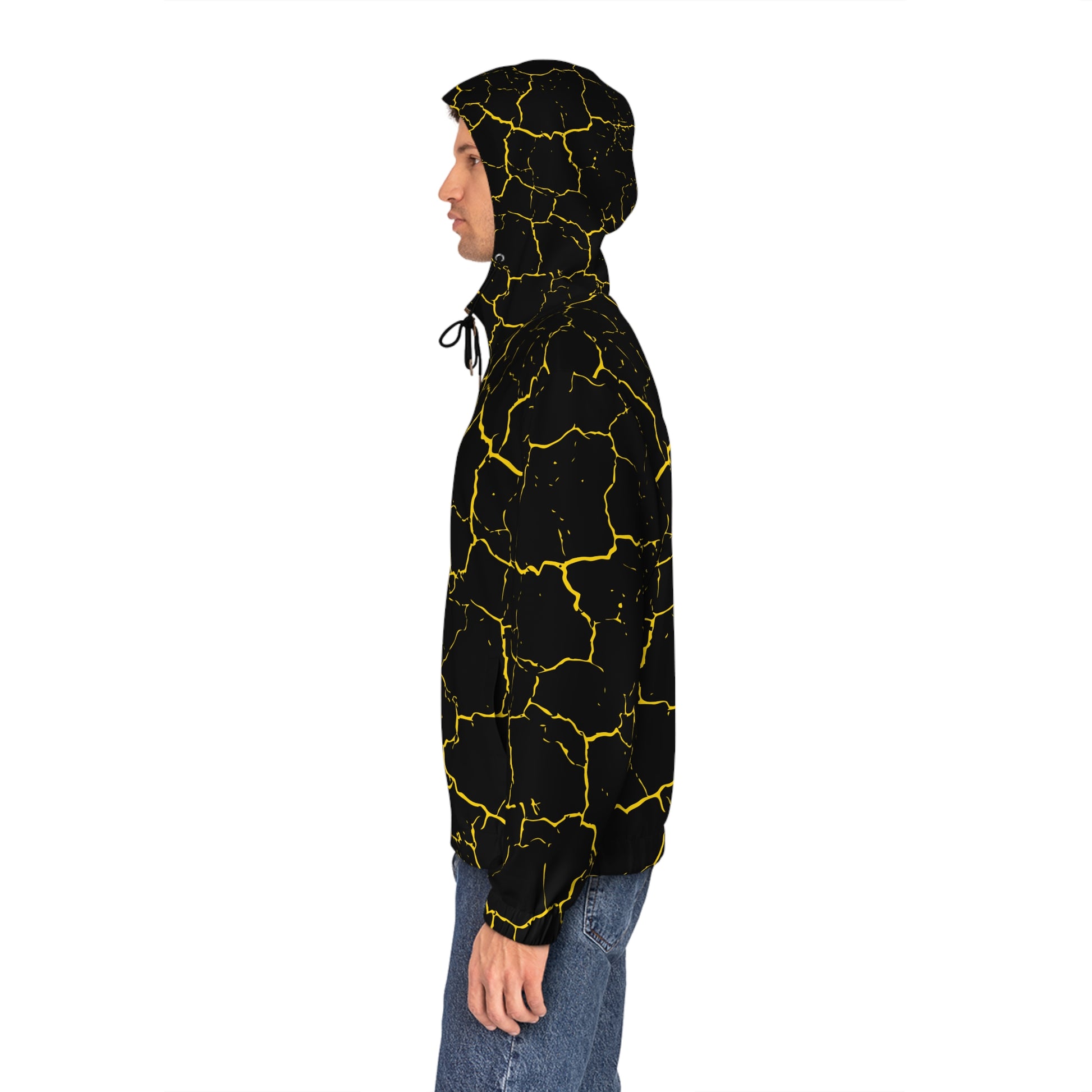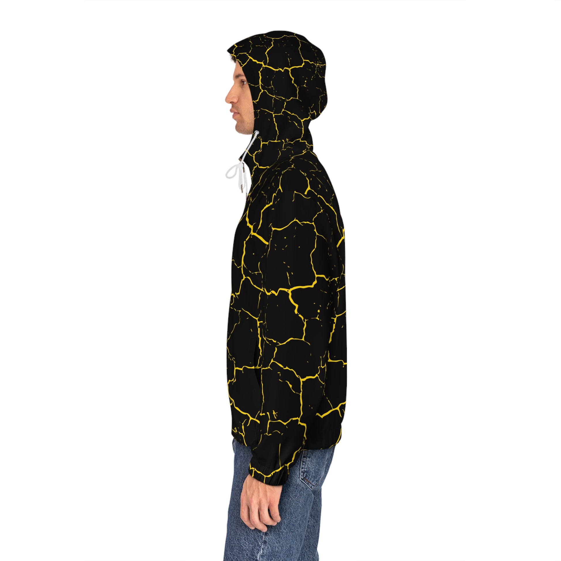 Turn heads without saying a word. This bold, black-and-yellow hoodie radiates confident energy — it hums with the rush of neon lights and late-night streets. The slim, regular fit keeps movement easy; the stretch-knit fabric sits close to the body while staying breathable. Zip the gold metal zipper up against a cool wind, tighten the drawstring when you need focus, or leave it open to let the yellow paneling flash as you move. Pockets carry your essentials and warm your hands after a long shift or a night out. It’s the kind of layer you reach for when you want to be seen: edgy, alive, and unmistakably urban. Wear it to a gig, on a city run, or while meeting friends for rooftop drinks — wherever you want your style to speak first.
