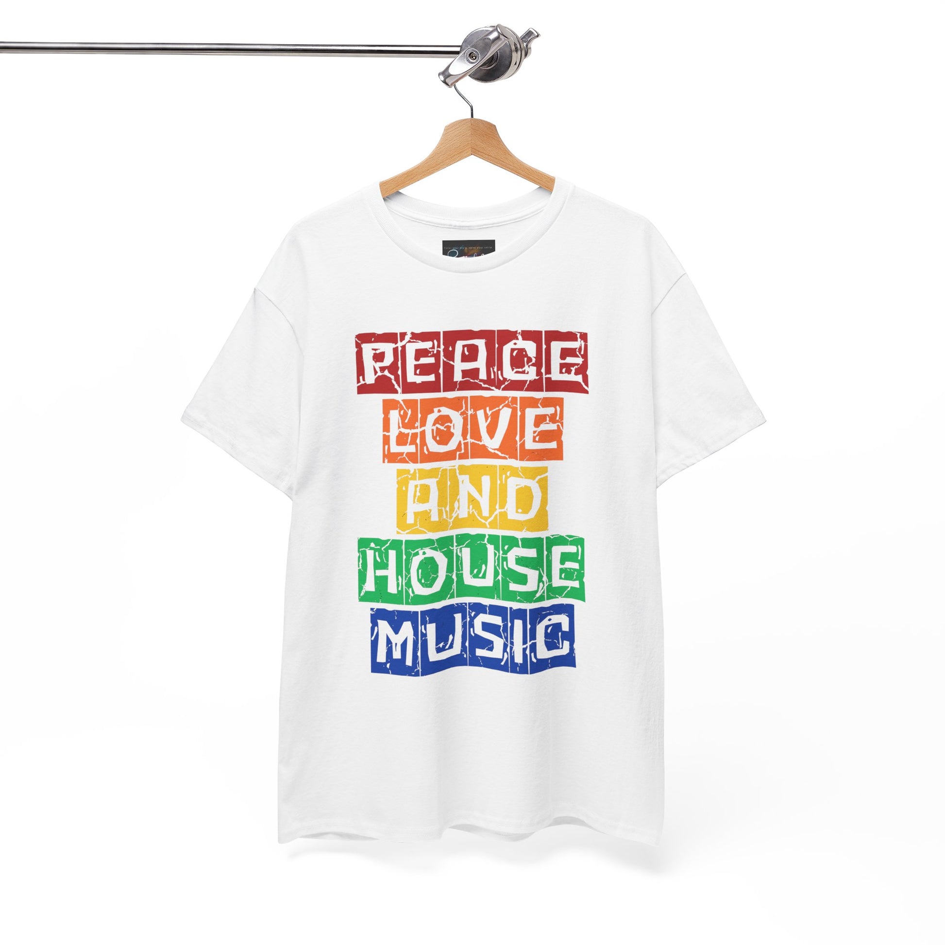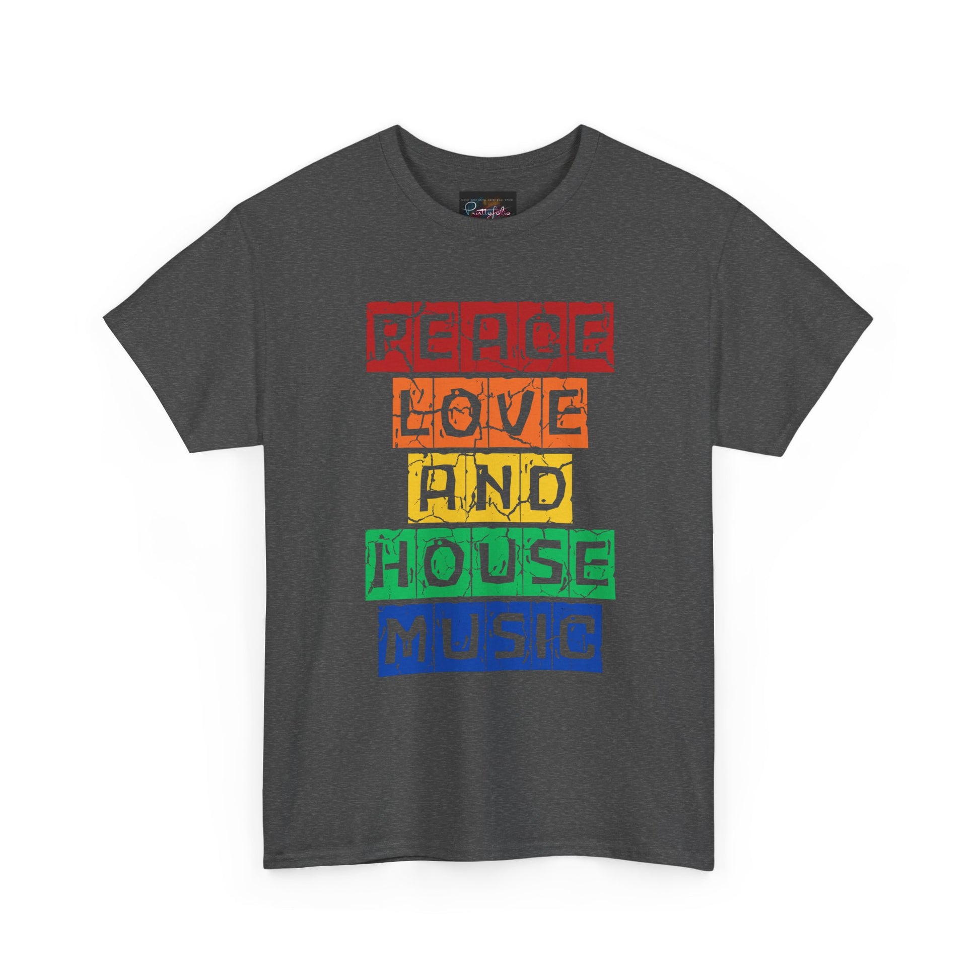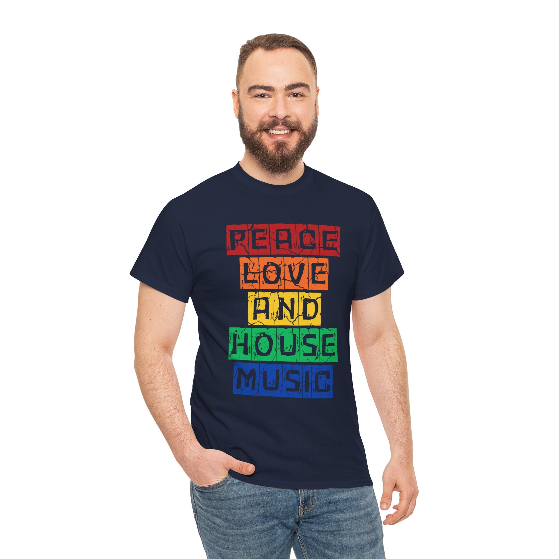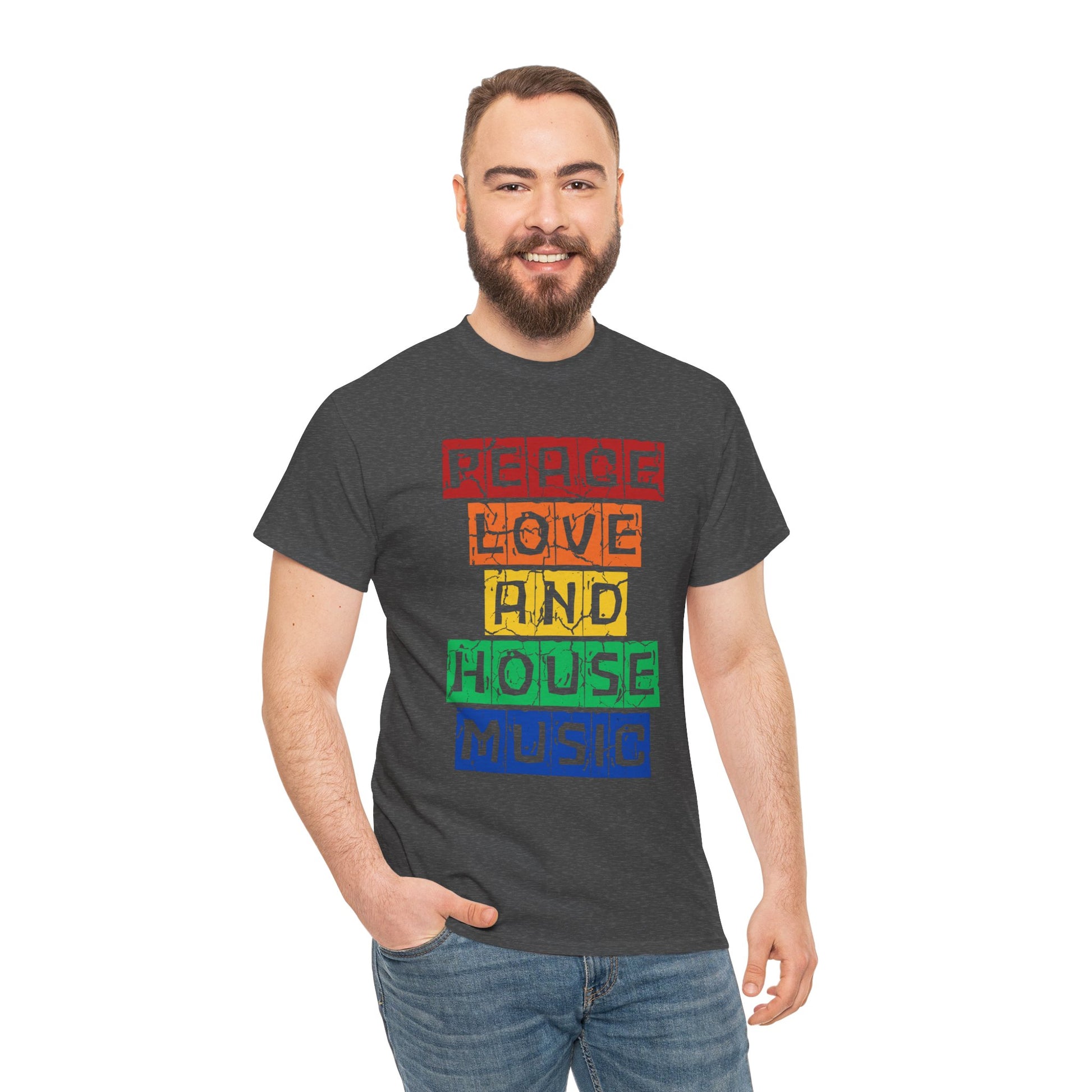Peace Love and House Music T-Shirt — Unisex Heavy Cotton Tee
