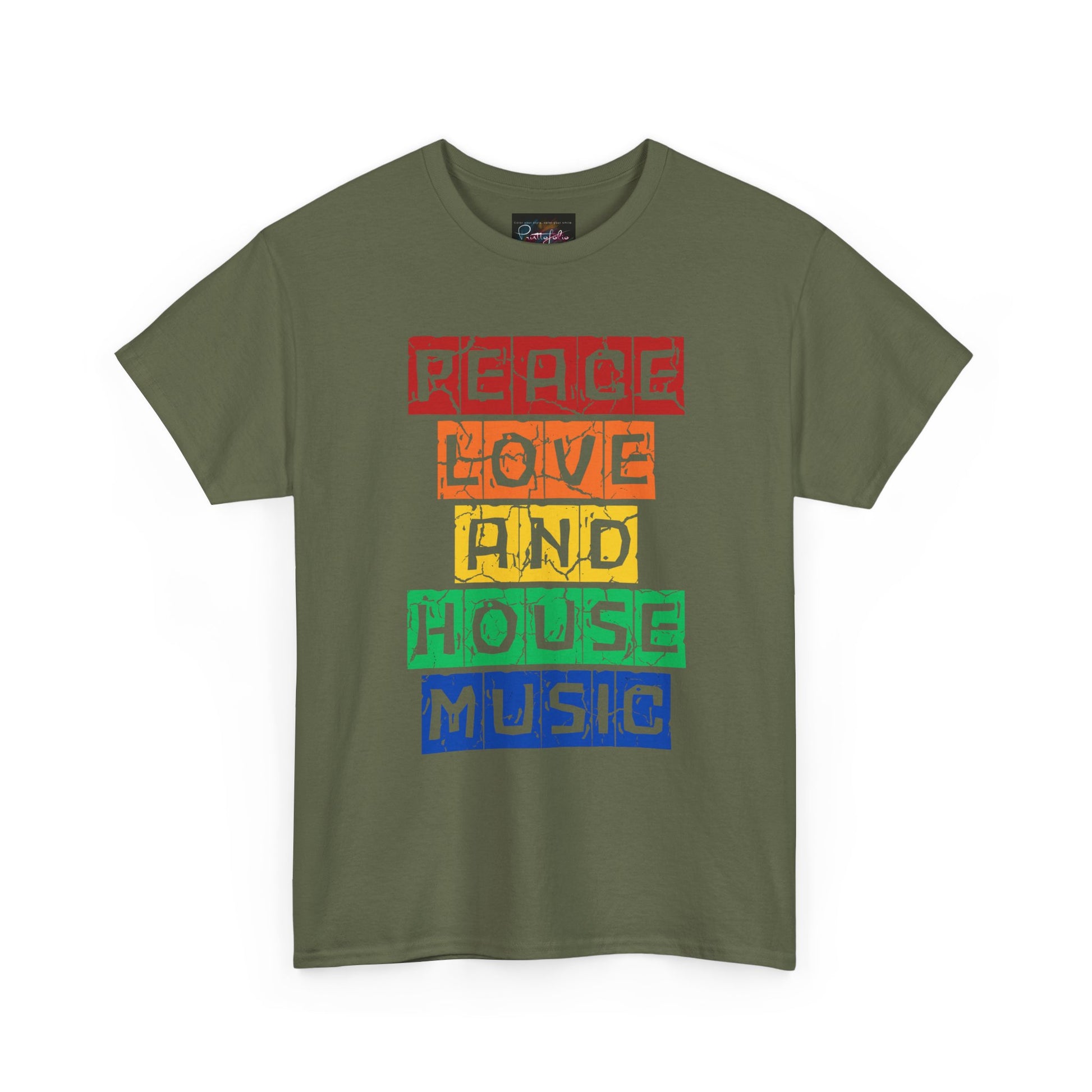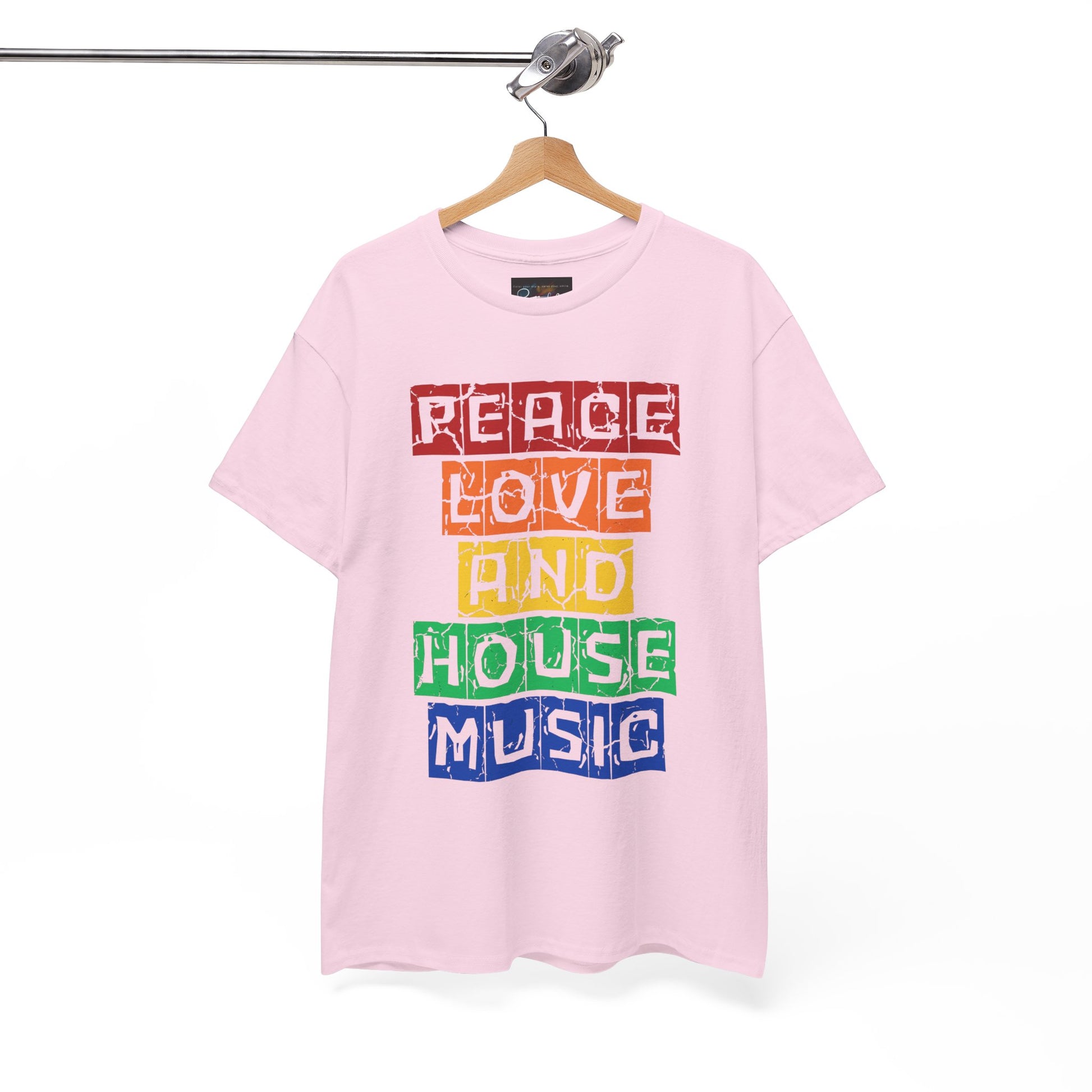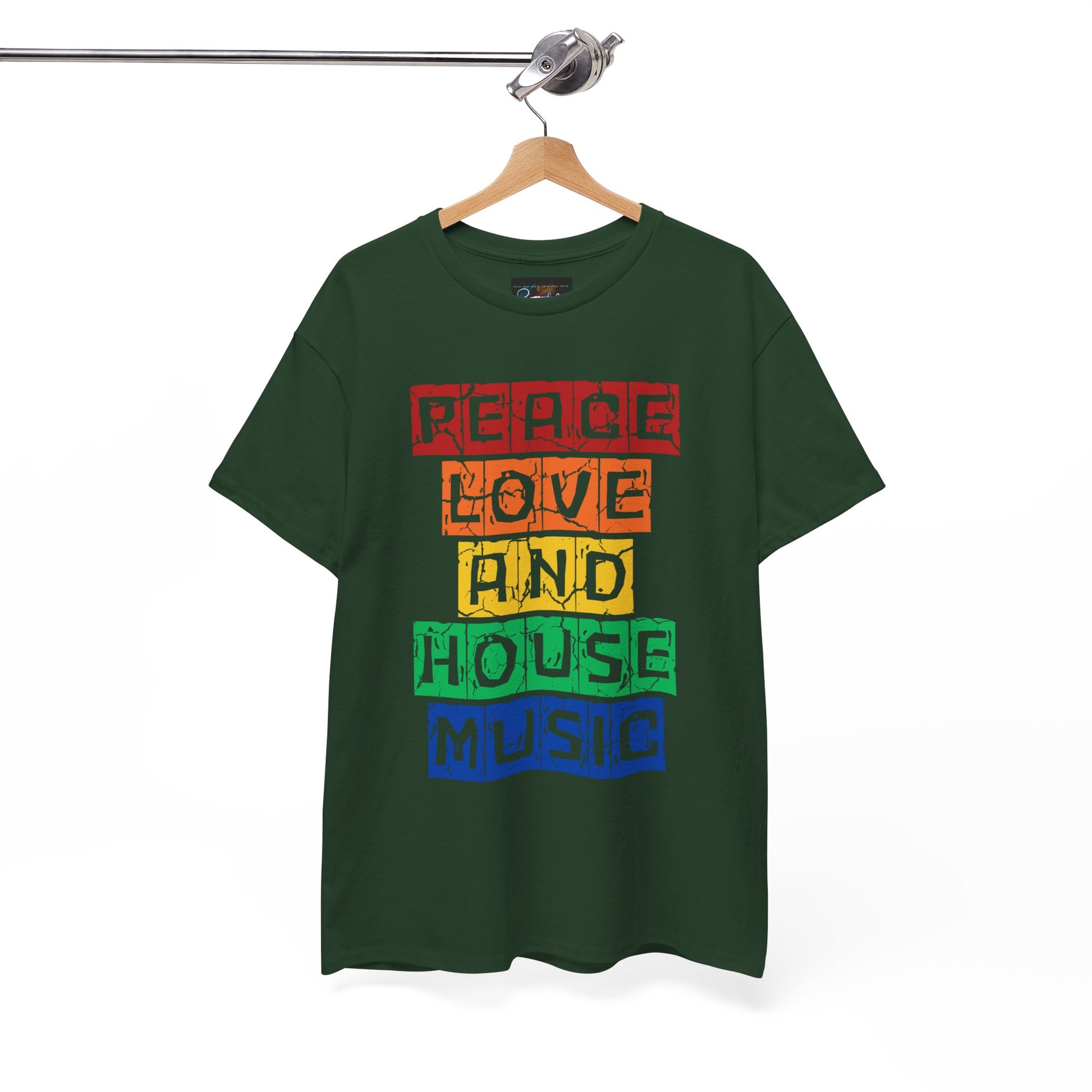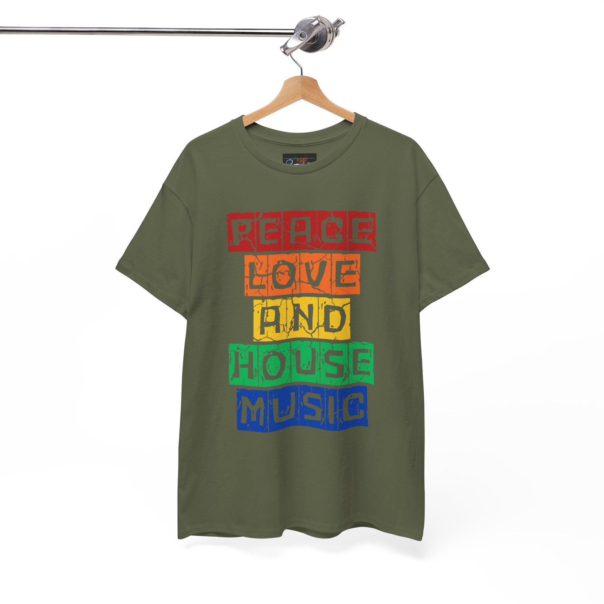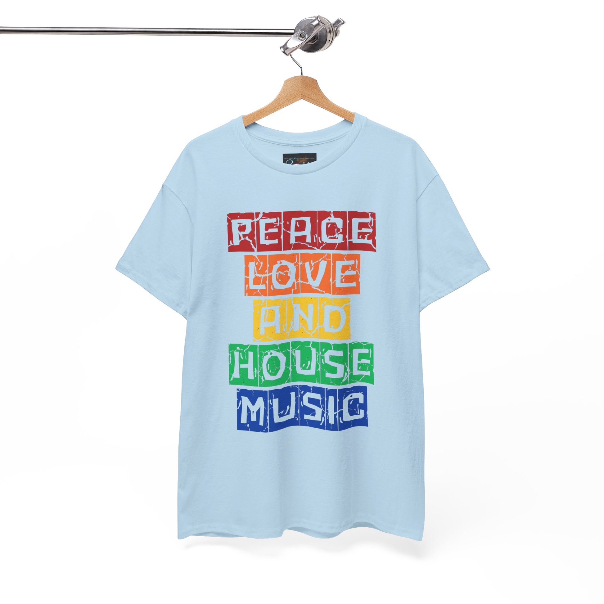 Peace Love and House Music T-Shirt — Unisex Heavy Cotton Tee