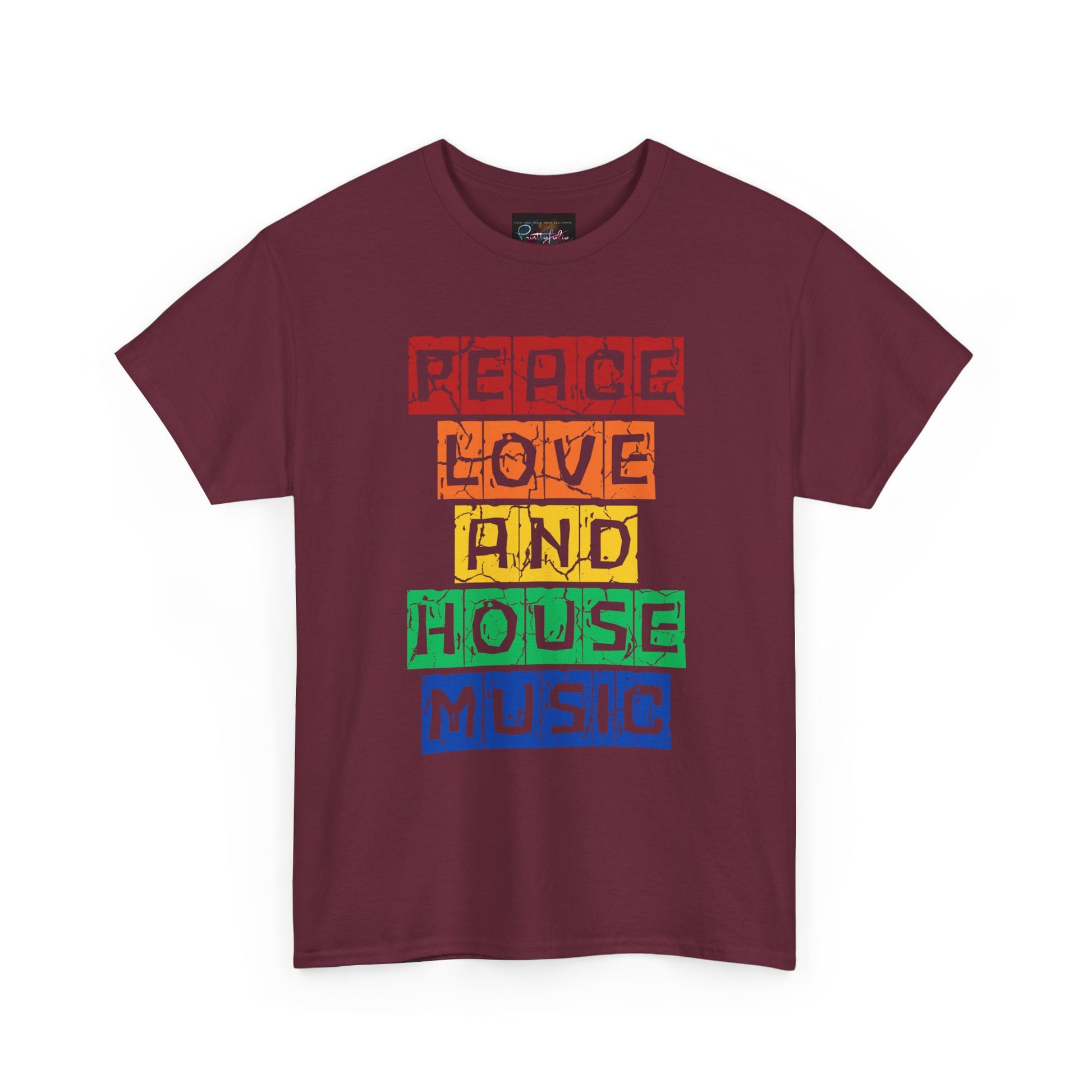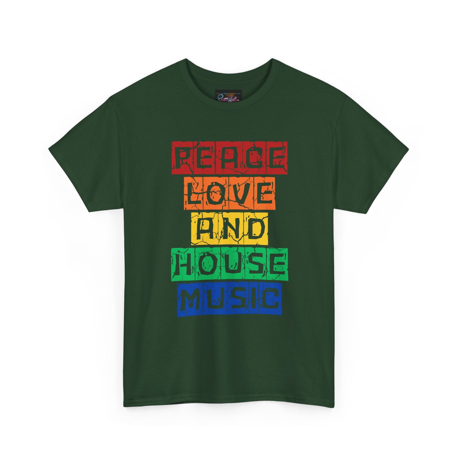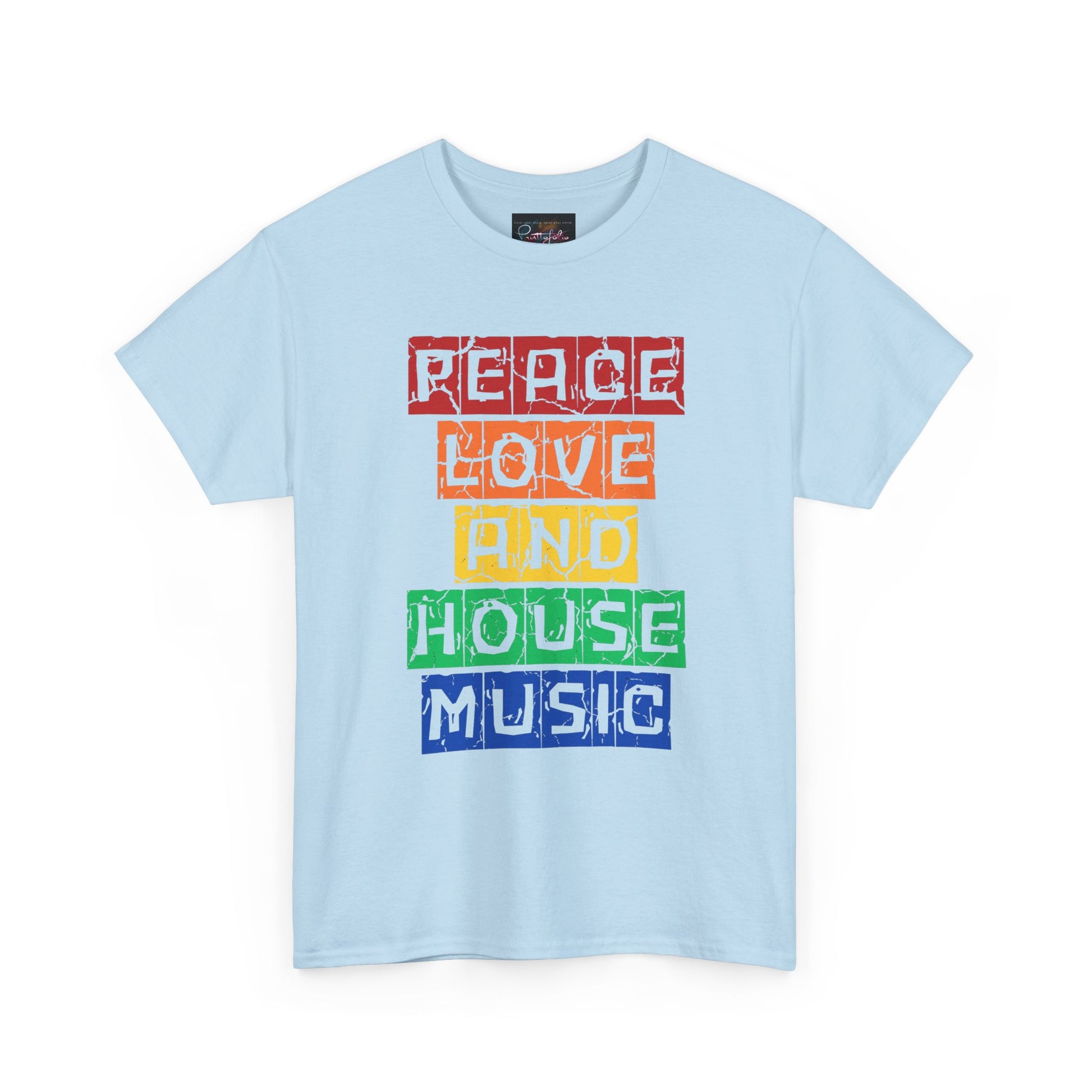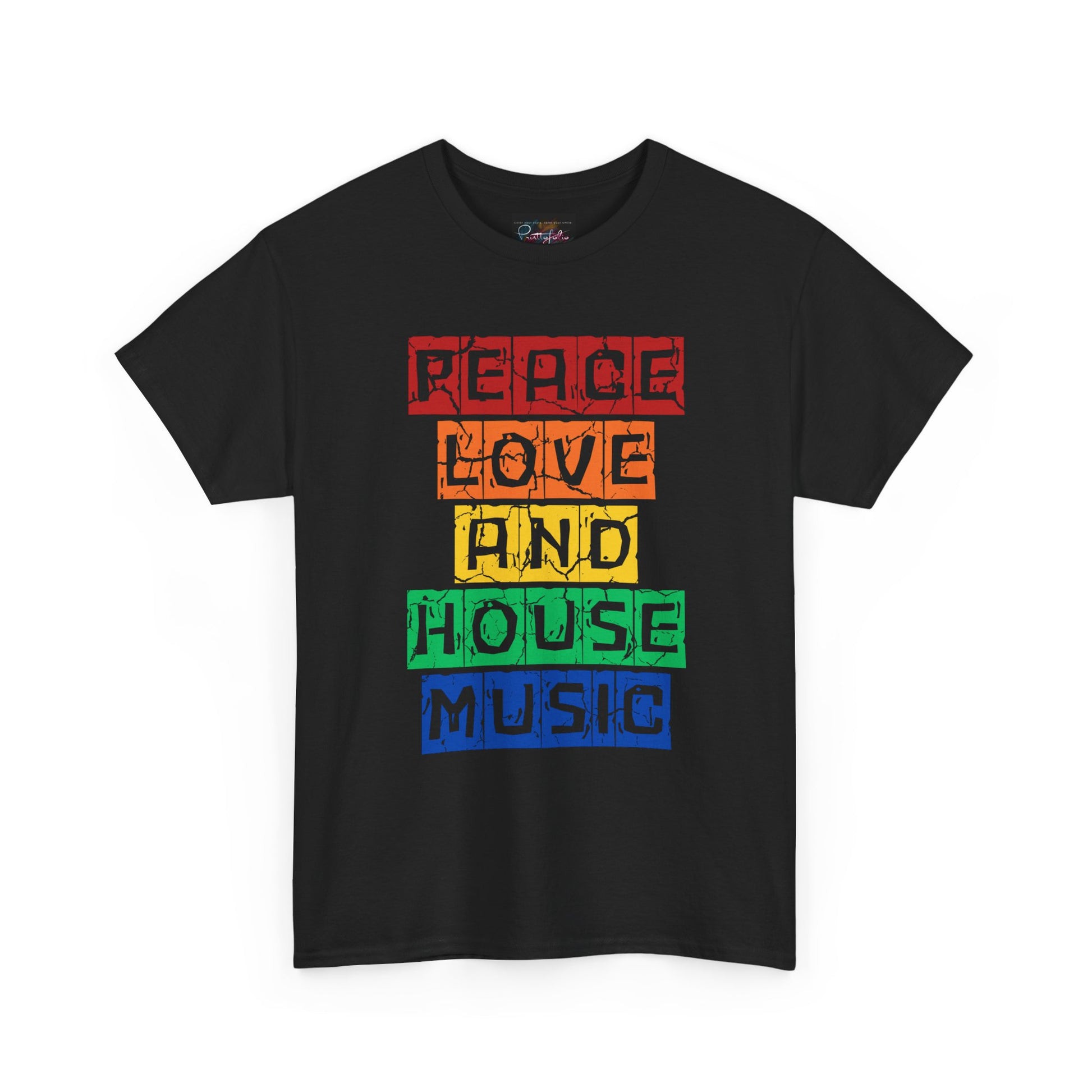 Peace Love and House Music T-Shirt — Unisex Heavy Cotton Tee